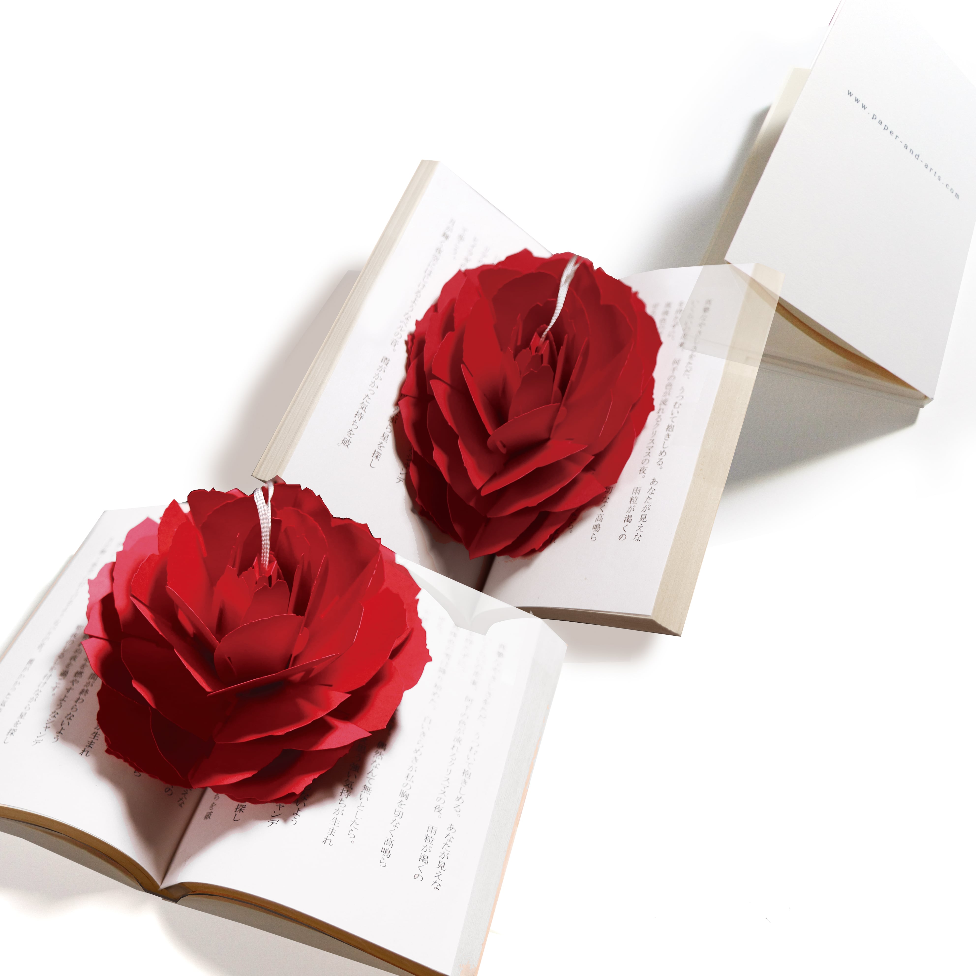 紙の花のしおり ポップアップペーパーブックマーク〈レッドローズ〉カラーバリエーション有 Pop-up Paper Bookmark -Rose-